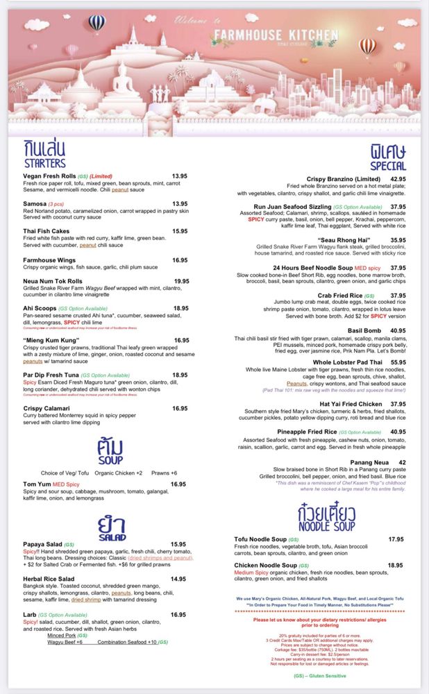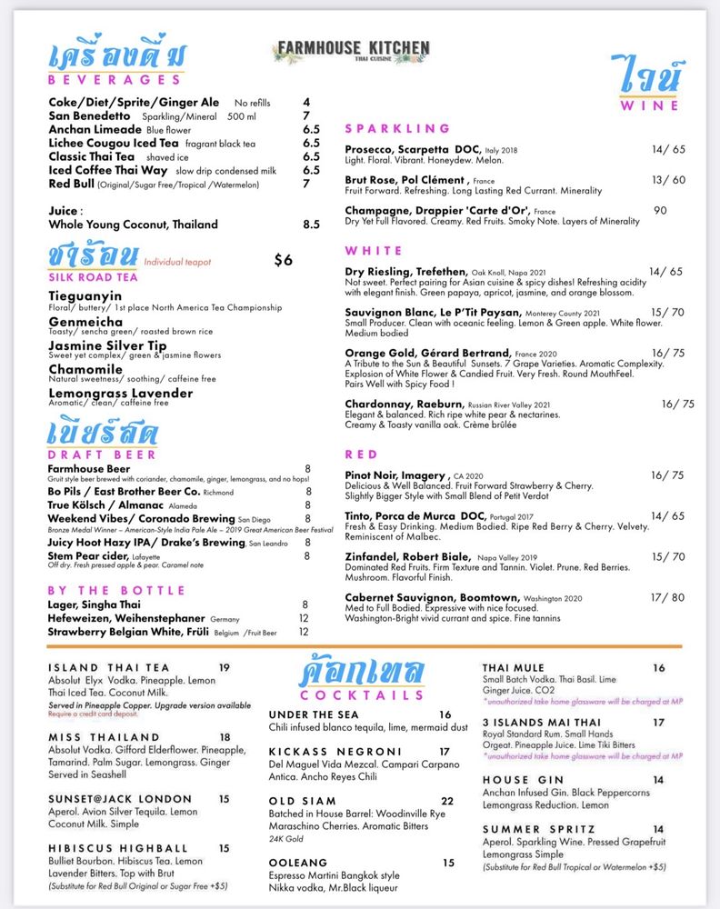 Farmhouse Kitchen Thai Cuisine Menu (Update 2025)